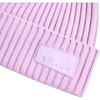 Lila gerippte Strickmütze mit umgeschlagenem Rand und Molos Logo auf der Vorderseite.