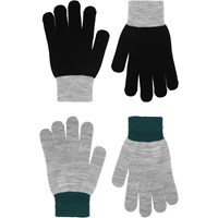 2er-Pack gestrickte Handschuhe. Ein Paar ist dunkelgrün mit schwarzen Details, während das andere Paar marineblau mit blauen Details ist. Die Handschuhe haben einen gerippten Bund um das Handgelenk, was sie bequem zu tragen macht und verhindert, dass sie von der Hand abrutschen.