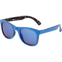 Klassische dunkelblaue Sonnenbrille mit blauen Spiegelgläsern und schwarz-weißem emoji-Aufdruck auf der Innenseite der Bügel. Molos Sonnenbrillen verfügen über 100% UV-Schutz. Größe 7-16 Jahre.