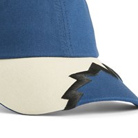 Klassische Kappe in Blau, Beige mit schwarzer Stickerei. Die Kappe hat einen leicht gebogenen Schirm und ist hinten verstellbar. Empfohlene Größenangabe: S/M = 53cm, M/L = 56cm.