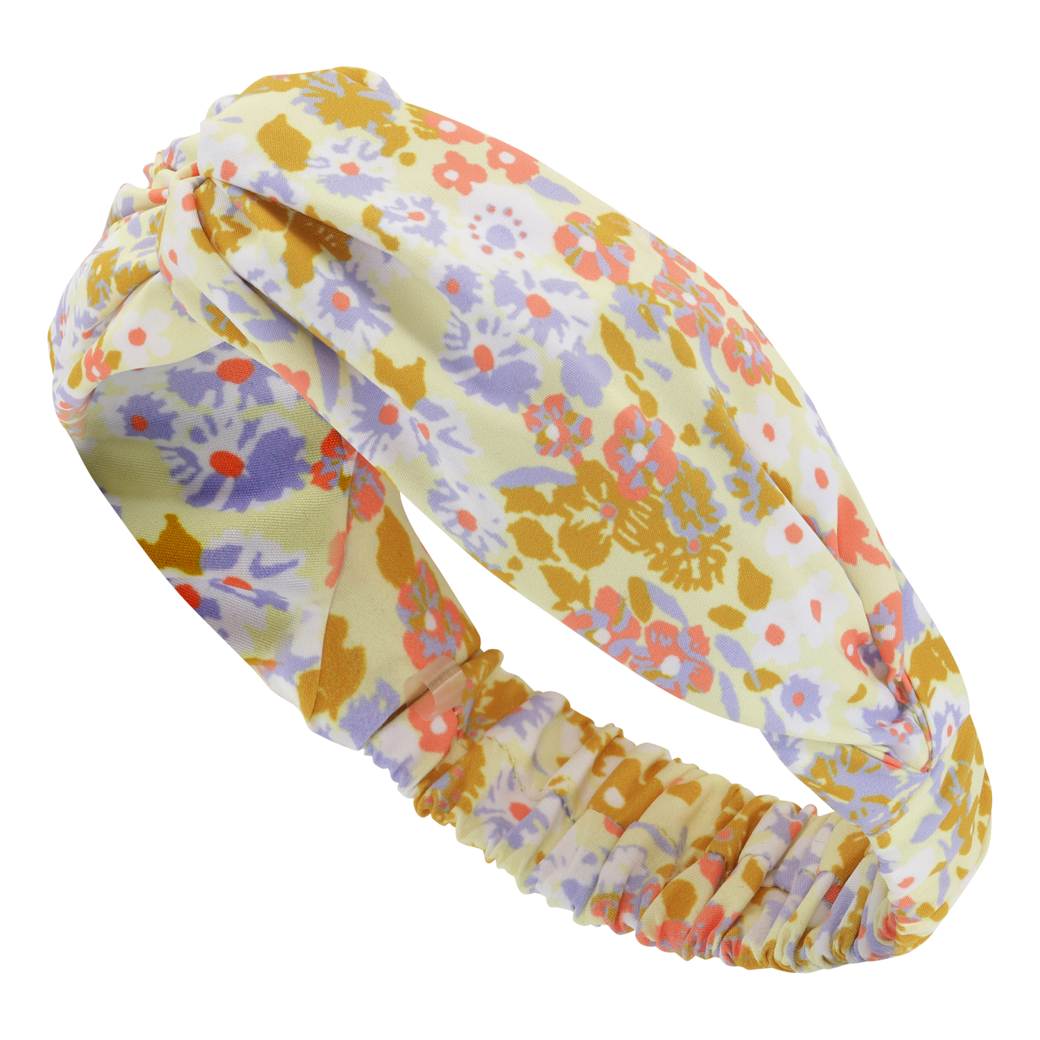 Hellgelbes Haarband mit Blumendruck, der zum Druck auf Molos Bademode passt. Dieses Molo-Produkt ist recycelt und aus 100% recycelbarem Polyester hergestellt.