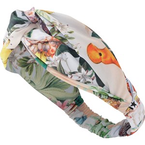 Hellblaues Haarband mit einem Aufdruck exotischer Vögel, der zum Aufdruck der Bademode von Molo passt. Dieses Molo-Produkt ist recycelt und aus 100% recycelbarem Polyester hergestellt.