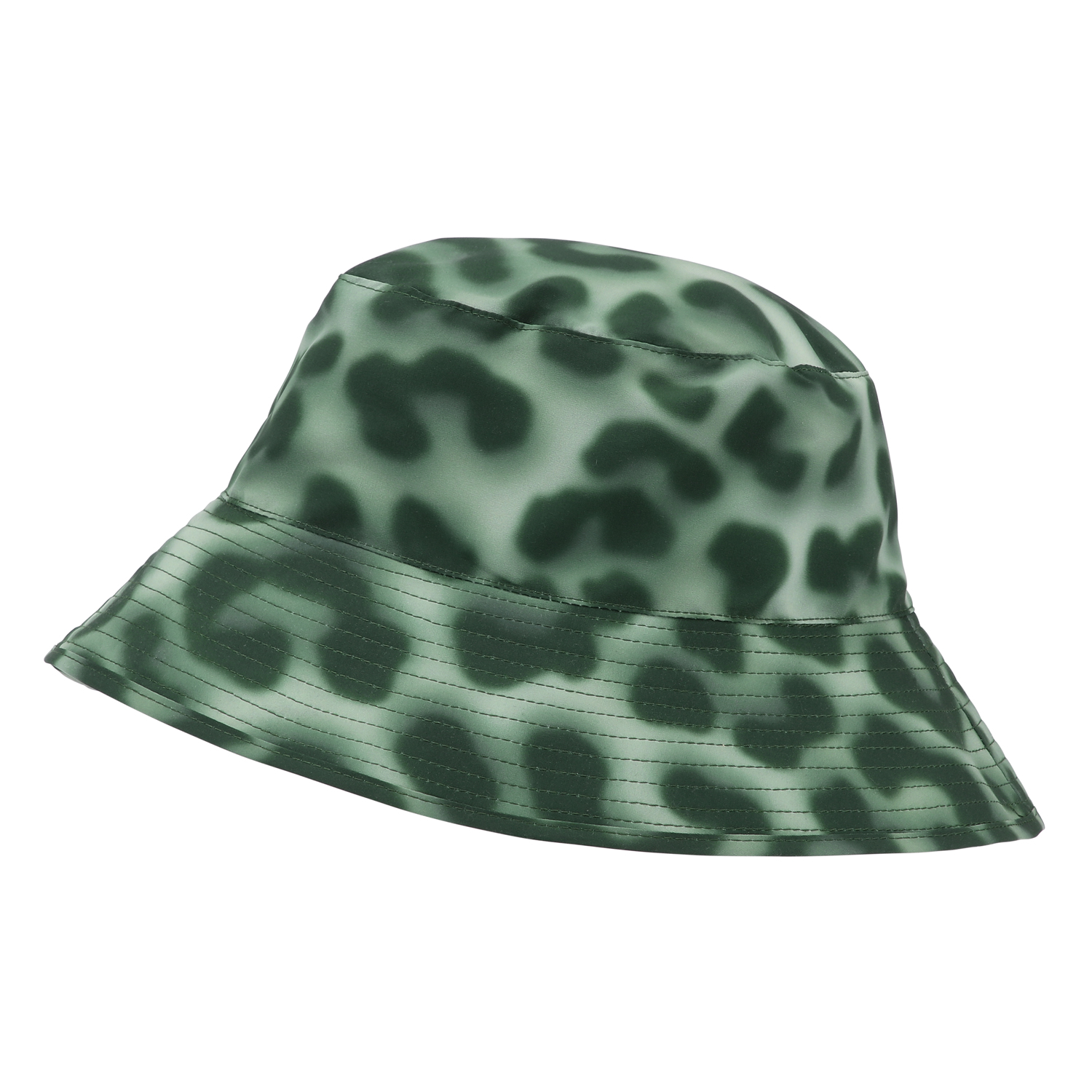 Grüner Leoparden-Eimerhut mit breiter Krempe und UV-Schutz 50+, der das Kind vor der Sonne schützt. Der Eimerhut ist ein unverzichtbares Sommer-Accessoire und peppt jedes Outfit auf. Der Sonnenhut ist hier mit einem Tigerstreifen-Print.