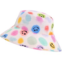 Bullymütze mit breiter Krempe und mehrfarbigem Allover-Print aus 100% Polyester. Der Druck zeigt eine wunderschöne Blumenwiese mit Schmetterlingen. Der breite Schirm ist perfekt, um zusätzlichen Schutz in der Sonne zu bieten.