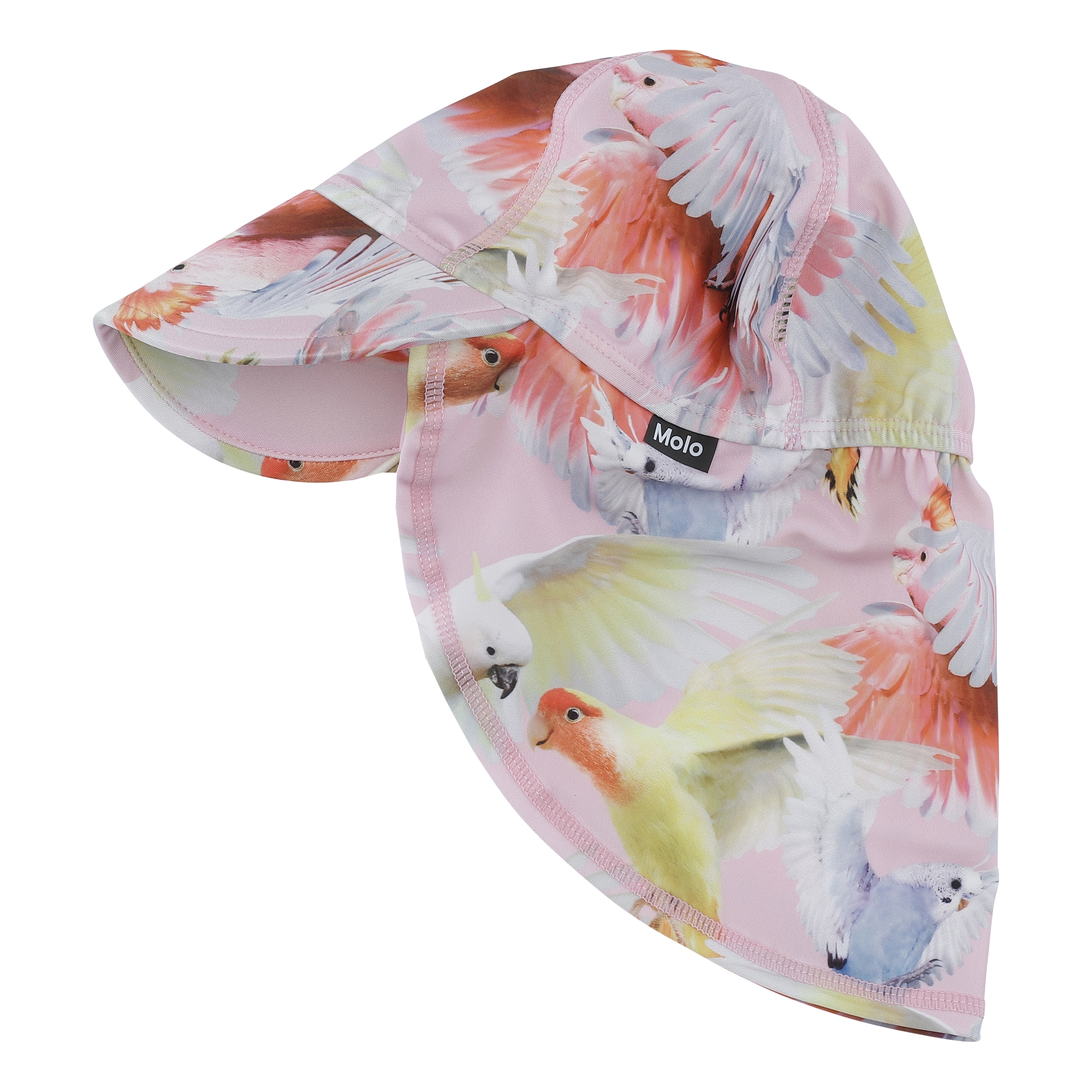 Sonnenhut mit UV-Schutz 50+, breitem Schirm sowie Nackenschutz, der Kinder bestmöglich schützt. Der Sonnenhut hat den Aufdruck 'Cockatoos'.