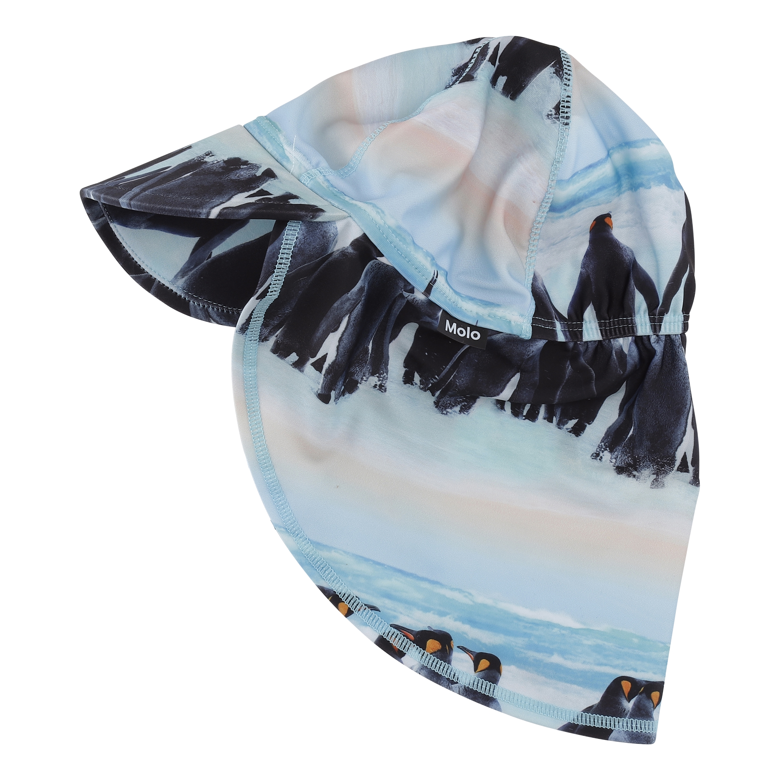 Sonnenhut mit UV-Schutz 50+, breitem Schirm sowie Nackenschutz, der Kinder bestmöglich schützt. Der Sonnenhut hat den Aufdruck 'Penguin Stripe'.