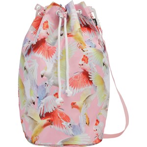 Große Tasche mit Surfprint. Die Tasche ist wasserdicht und hat einen zusammenziehbaren Kordelzug sowie einen Schulterträger. Die Tasche ist perfekt für einen Spaziergang am Strand.