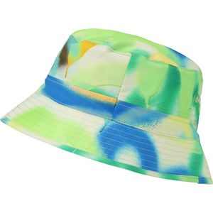 Bullymütze aus 100% Polyester mit Allover-Print in Grün-, Blau- und Orangetönen. Die Mütze ist perfekt, um zusätzlichen Schutz in der Sonne zu bieten.