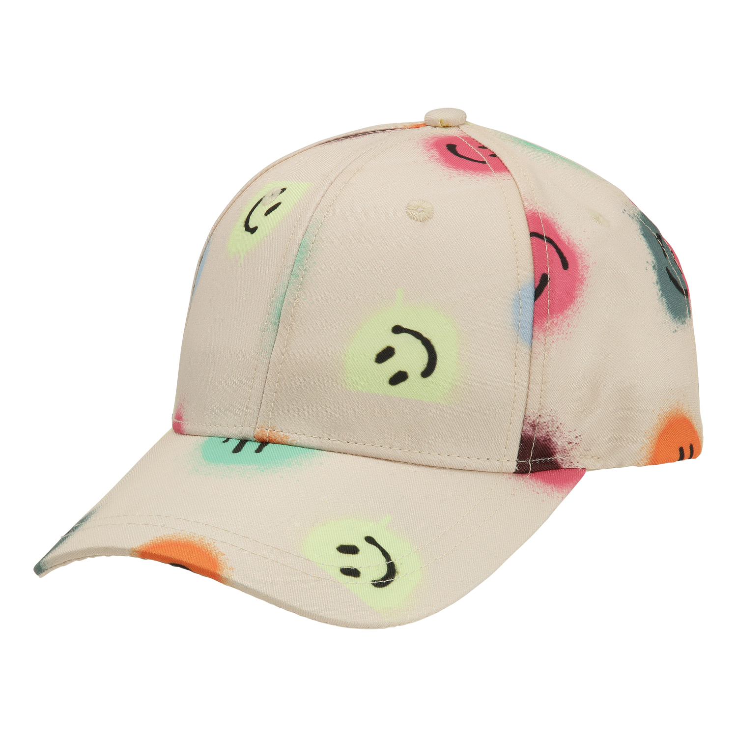 Klassische leichte Baseballcap mit Aufdruck aus verschiedenfarbigen Smileys. Das Cap hat eine leicht gebogene Krempe und ist im Nacken verstellbar. Richtgröße: 3–5 Jahre = 52 cm, 6–8 Jahre = 54 cm, 9–14 Jahre = 56 cm