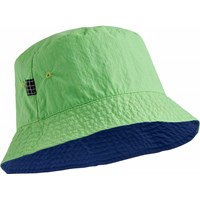 Wendbare blaue und grüne Eimerhut aus recyceltem Nylon. Die Mütze hat eine reguläre Passform mit Luftlöchern und ist in drei verschiedenen Größen erhältlich. Das Material ist leicht und trocknet schnell.