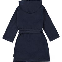Wyn ist ein schöner weicher Bademantel aus leichtem und dicht gewebtem blauem Frottee. Der Mantel hat zwei Taschen, ein Band in der Taille und eine große Kapuze, um Hals und Kopf besonders warm zu halten.