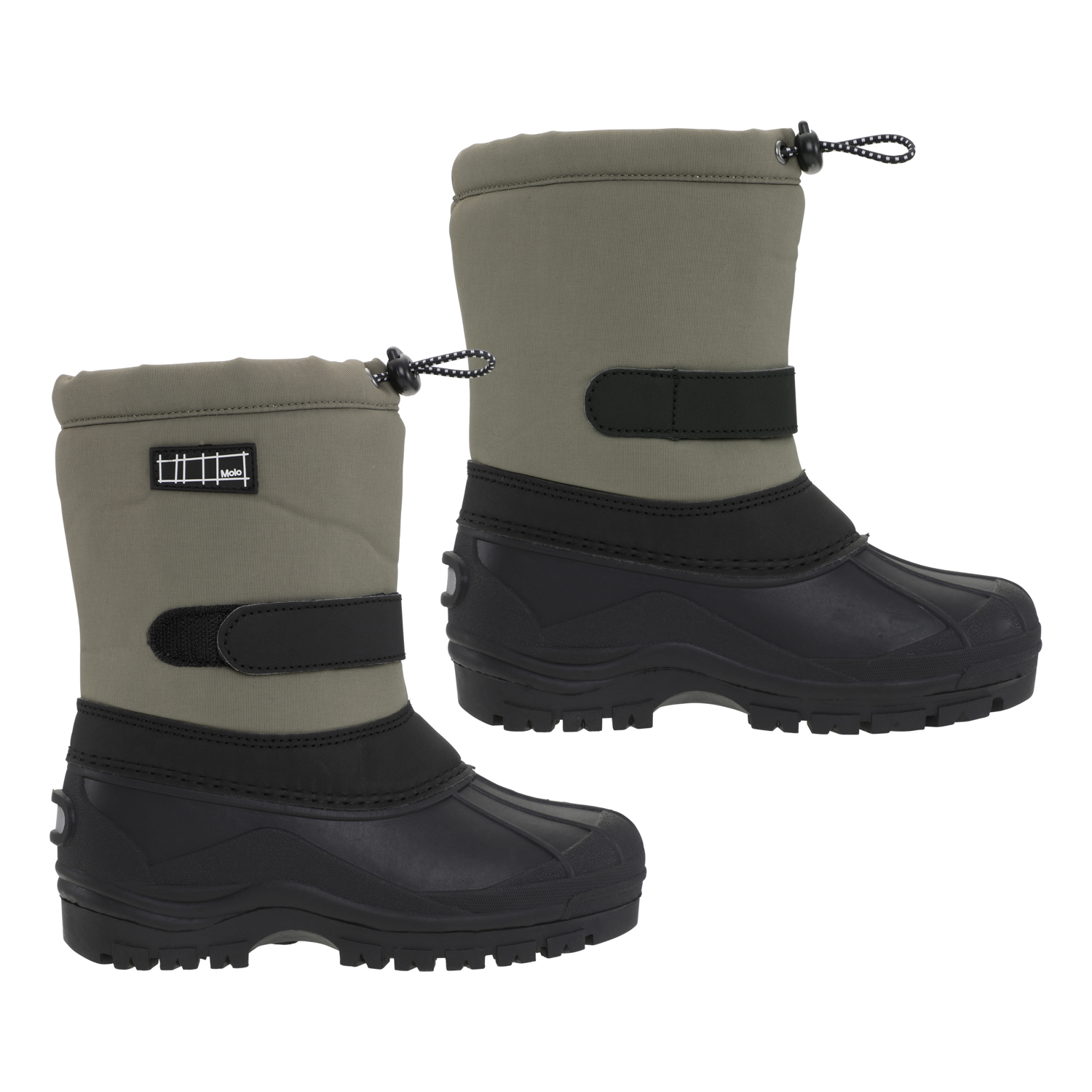 Praktischer grüner Winterstiefel mit Klettverschluss und dicker schwarzer Sohle. Die Stiefel haben eine gute Höhe und sind für jedes Wetter geeignet. Darüber hinaus passen die Stiefel in Farben und Drucken zur Oberbekleidung von Molo.