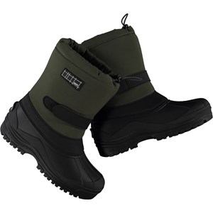 Grüne Winterstiefel aus funktionellem Polyester mit verstellbarem Verschluss im Schaft und einer Sohle aus weichem Gummi, die sich um den Fuß herum fortsetzt. Das Außenmaterial des Stiefels ist zu 35% recycelt und besteht aus recyceltem Polyester. Sowohl Sohle als auch Schaft sind separat wasserdicht. Der Stiefel hat eine, starke Polyester-Innensocke, die den Stiefel sowohl für die kältere als auch für die wärmere Jahreszeit nutzbar macht.Dieses Produkt hat eine wasserabweisende PFC-freie Imprägnieru