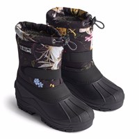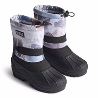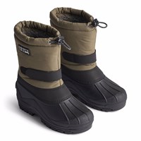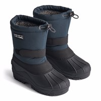 Praktische Winterstiefel in Dunkelblau mit einer robusten und rutschfesten schwarzen Sohle. Die Stiefel haben ein verstellbares Gummiband oben am Schaft, verstellbares Klettband um den Knöchel, eine innere Socke und eine gute Höhe, die sie für alle Arten von Wetter geeignet macht.