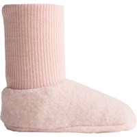 Rosa Baby-Hausschuhe aus 100% Merino Wolle, die die kleinsten Füße wärmen. Dieses