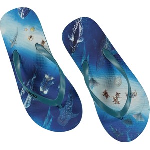 Molos Zeppo-Sandalen sind ein Muss in der Sommerhitze. Diese Flip-Flops sind blau mit einem Meeresdruck.