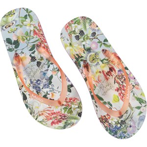 Unverzichtbare Flip-Flops für den Sommer mit Zehenriemen. Die Sandalen sind in Hellblau mit Blumendruck und passen perfekt zur Bademode von Molo.