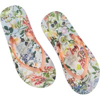 Unverzichtbare Flip-Flops für den Sommer mit Zehenriemen. Die Sandalen haben einen Spiraldruck.