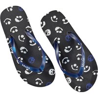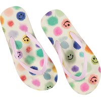 Lila Flip-Flops mit Blumendruck, weicher Schaumstoffsohle und lila Kunststoffriemen. Der Aufdruck auf den Sandalen passt perfekt zu Molos Bademode.
