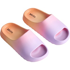 Geformte Badeslipper in Lila und Orange. Wasserabweisend und ideal für Pool und Strand.
