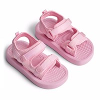 Rosa, leichte und sportliche Sandalen mit einer weichen Schaumstoffsohle, Neopren-Einsätzen und einem praktischen Klettverschluss am Knöchel und über dem Vorderfuß, der für die richtige Passform sorgt. Die Sandalen sind perfekt für aktive Sommertage, ohne dabei auf Komfort zu verzichten.