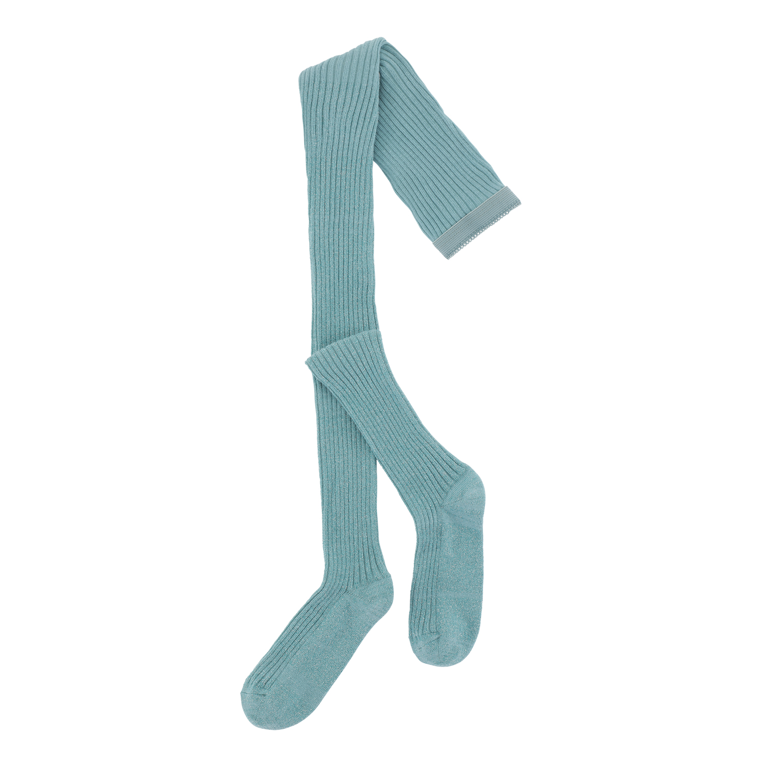 Türkisfarbene Strumpfhose mit Glitzer in Rippstrick und elastischem Bund für guten Komfort.