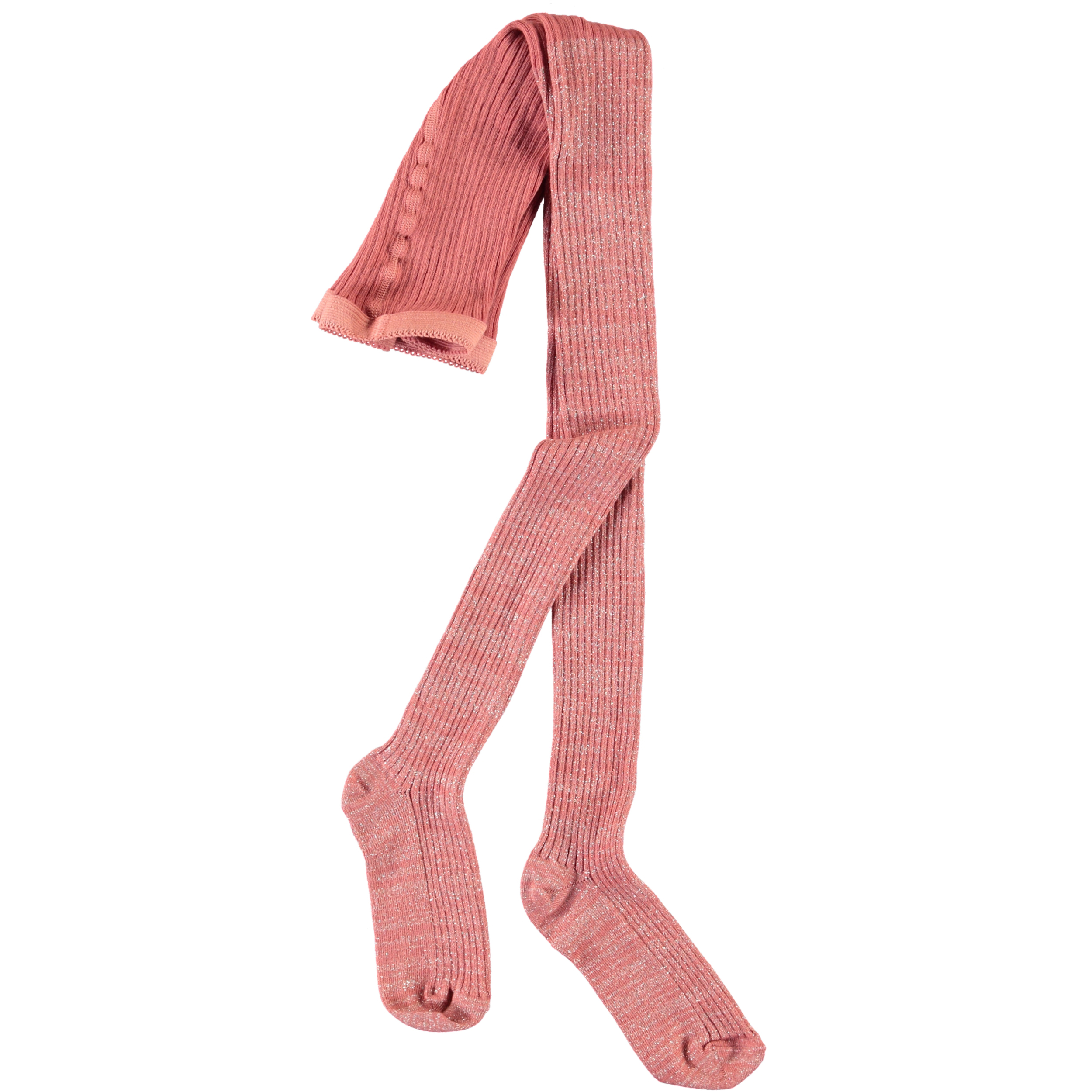 Rosa Strumpfhose in Ripp mit Glimmer.