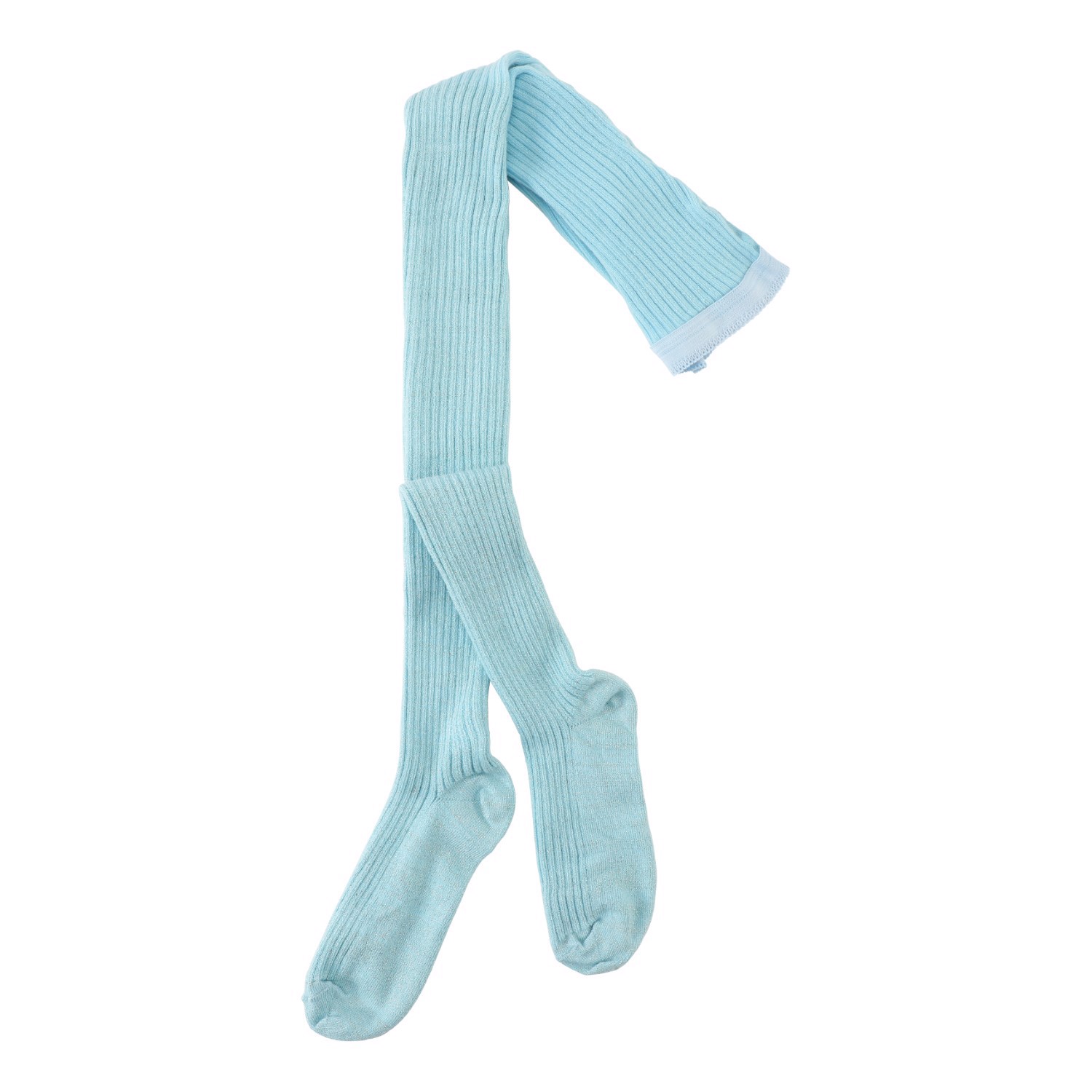 Hellblaue Feinstrick-Rippstrumpfhose mit Glitzer aus Öko-Baumwolle. Diese Strumpfhose hat einen elastischen Bund, der für eine perfekte Passform sorgt.