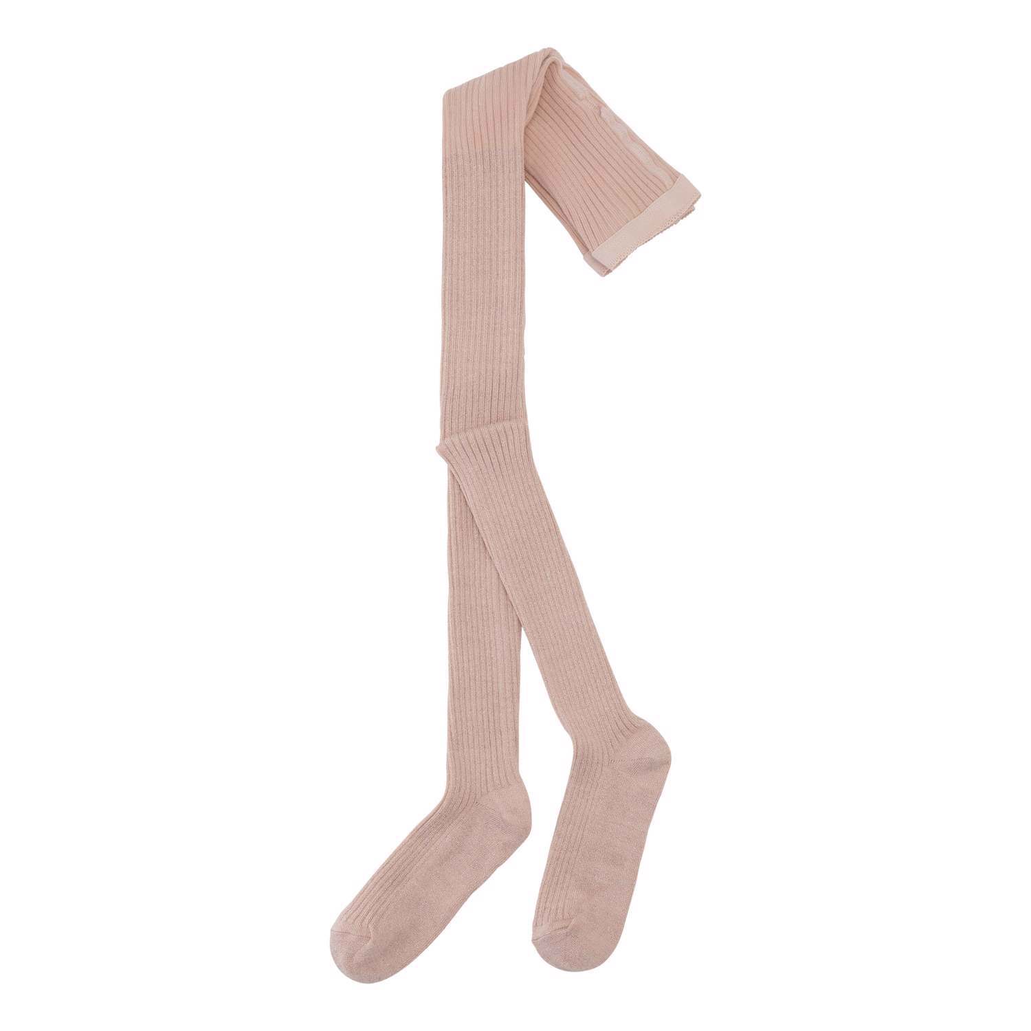 Puderfarbene Strumpfhose mit Glimmer im Rippbündchen und elastischem Bund für guten Tragekomfort. Dieses Produkt ist Öko-Tex zertifiziert.