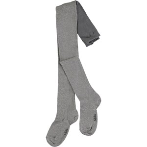 Silberne Strumpfhosen mit Glimmer und elastischer Taille für guten Komfort.