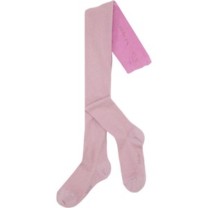 Eine Strumpfhose in Rosa mit Glitzer. Das Logo von Molo ist unter jedem Fuß in Lila eingewebt.Dieses