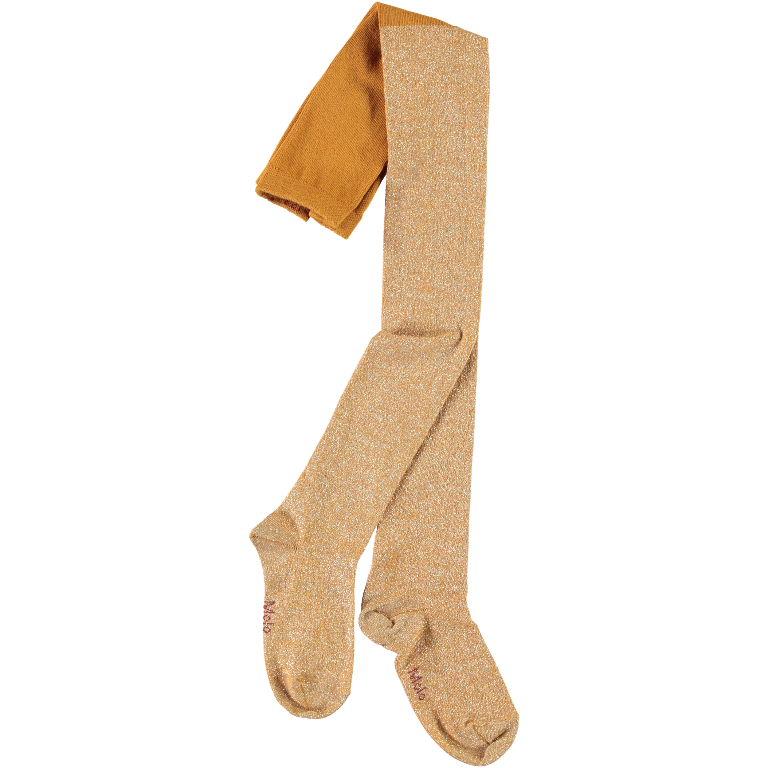 Goldene Strumpfhose mit Glimmer und elastischer Taille für guten Komfort.