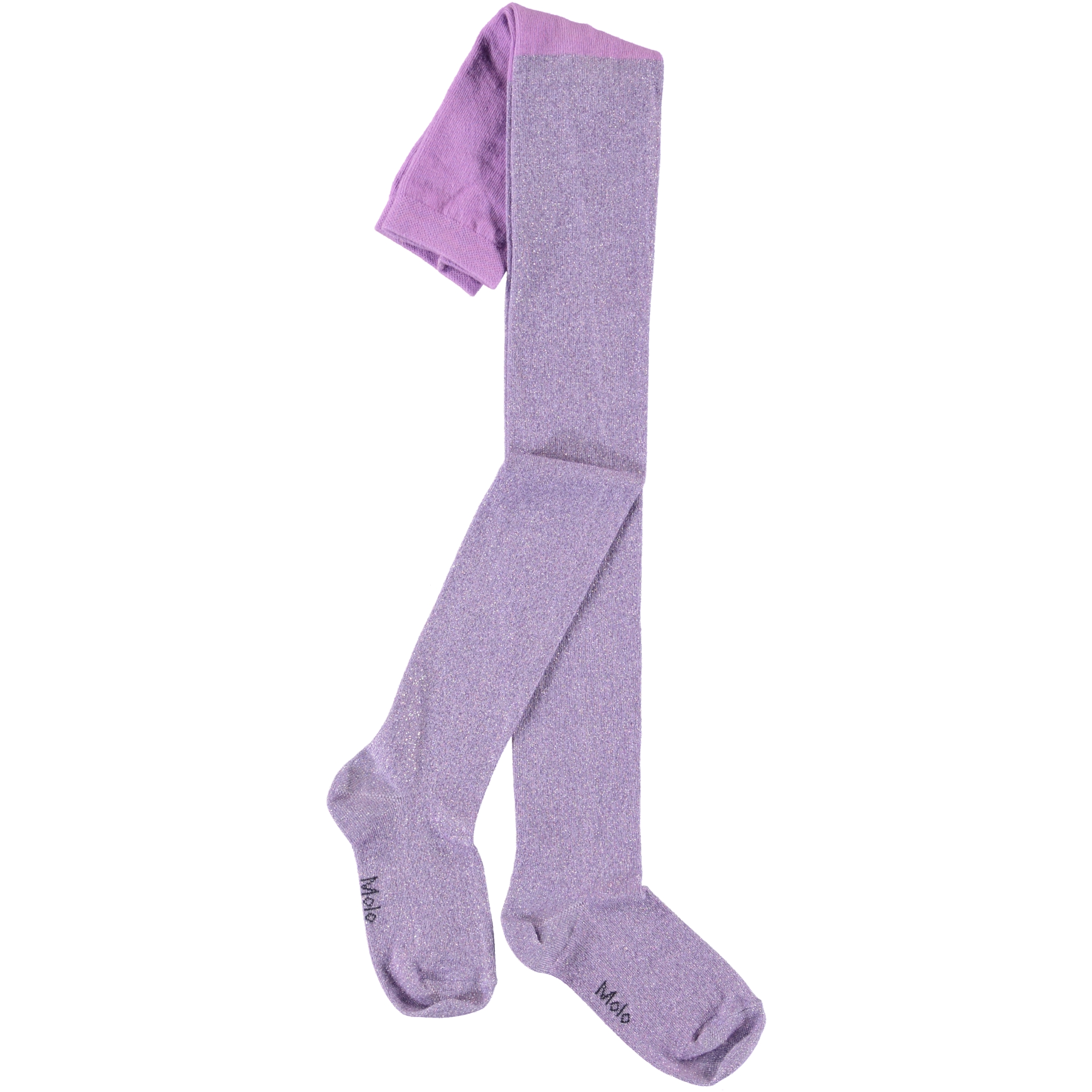 Lila Strumpfhose mit Glimmer und elastischer Taille für guten Komfort.