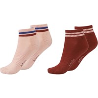 Zwei Paar Söckchen in Rot und Rosa mit schmalen Streifen am Schaft. Die Socken sind perfekt für Sport und Alltag.