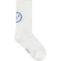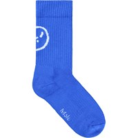 2er-Pack Baumwollsocken. Die Socken haben gerippten Schaft und elastischen Bund oben, und sie sind angenehm weich zu tragen. Das Set enthält ein Paar Socken in kräftigem Blau mit einem sauren Gesicht auf der Rückseite in Weiß, sowie ein Paar weiße Socken mit einem sauren Gesicht auf der Rückseite.