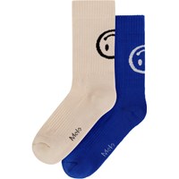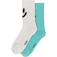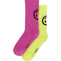 2er-Pack fein gestrickte Socken aus weicher Baumwollmischung mit geripptem Schaft und Gummizug am Abschluss. Die Packung enthält ein Paar pinkferbene und ein Paar gelbe Socken, beide mit einem Smiley-Motiv auf der Rückseite des Schafts.