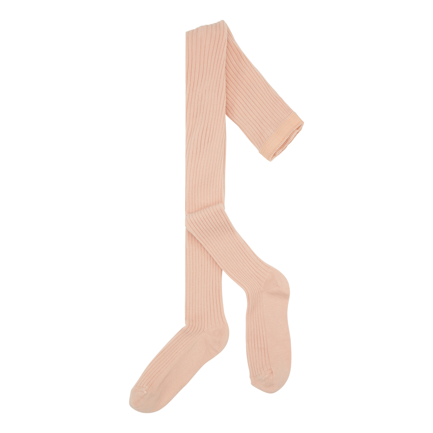 Eine rosa Strumpfhose in Rippstrick mit breitem Gummizug an der Taille für die optimale Passform. Dieses