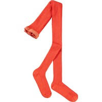 Rote orangefarbene Feinstrick-Rippstrumpfhose aus Baumwolle. Der elastische Bund sorgt für eine bequeme Passform.