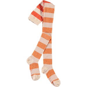 Strumpfhose in Ripp mit breiten Streifen in Orange und Beige.