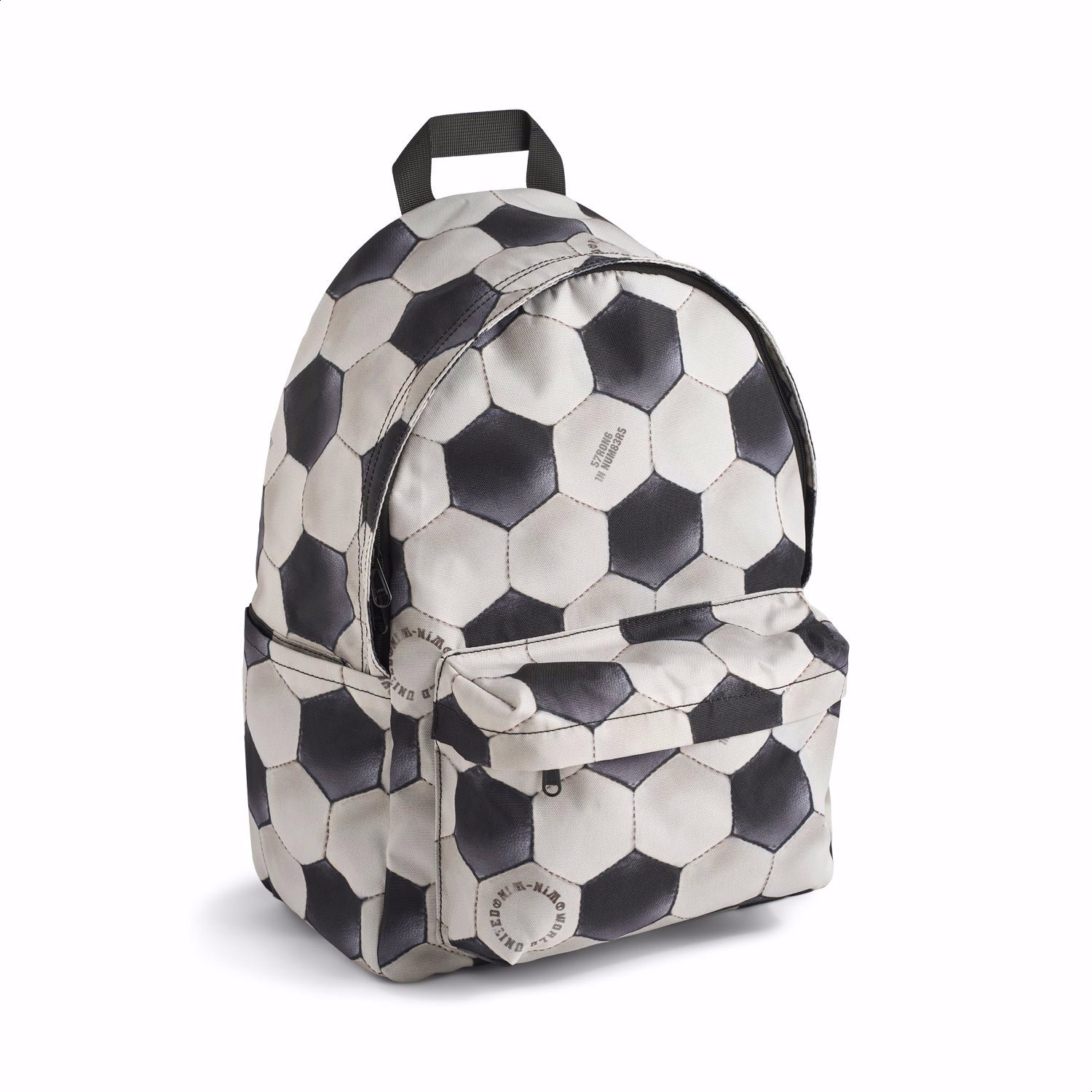 Schwarzer und weißer Rucksack mit Fußball-Print. Der Rucksack bietet viel Stauraum, darunter ein gepolstertes Fach, das deinen Laptop oder dein Tablet schützt. Er ist mit einer Reißverschlusstasche an der Vorderseite, Flaschentaschen auf beiden Seiten und gepolsterten Rücken- und Schultergurten ausgestattet. Außerdem verfügt er über einen verstellbaren Brustgurt, der eine gleichmäßige Gewichtsverteilung gewährleistet. Abmessungen: 30 x 17 x 42. Volumen: 21L.