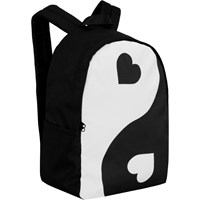 Schwarzer Rucksack mit weißem Yin- und Yang-Motiv auf der Vorderseite. Der Rucksack bietet viel Stauraum, darunter ein gepolstertes Fach, das deinen Laptop oder dein Tablet schützt. Er ist mit Flaschentaschen auf beiden Seiten und gepolsterten Rücken- und Schultergurten ausgestattet. Außerdem verfügt er über einen verstellbaren Brustgurt, der eine gleichmäßige Gewichtsverteilung gewährleistet. Abmessungen: 30 x 17 x 42. Volumen: 21L.