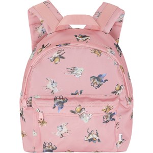 Rucksack in Rosa mit einem Print von kleinen galoppierenden "Schmetterling-Pferden". Dieser Rucksack ist perfekt für kleine Abenteurer im Alter von 3-6 Jahren, mit einem großen Hauptfach und einer praktischen Reißverschlusstasche vorne. Der Rucksack verfügt über gepolsterte Rücken- und Schultergurte sowie einen verstellbaren Brustgurt für optimalen Komfort. Er ist ideal als Kindergartenrucksack und kann dank der verstellbaren Gurte mit dem Kind mitwachsen, was ihn bis zum ersten Schultag geeignet macht. Abmessungen: 26 x 10 x 30 cm. Volumen: 6,5L.