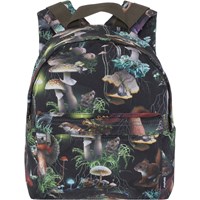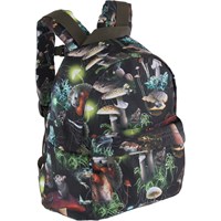 Rucksack in Schwarz mit einem Print verschiedener Waldtiere und Pilze des Waldes. Dieser Rucksack ist perfekt für kleine Abenteurer im Alter von 3-6 Jahren, mit einem großen Hauptfach und einer praktischen Reißverschlusstasche vorne. Der Rucksack verfügt über gepolsterte Rücken- und Schultergurte sowie einen verstellbaren Brustgurt für optimalen Komfort. Er ist ideal als Kindergartenrucksack und kann dank der verstellbaren Gurte mit dem Kind mitwachsen, was ihn bis zum ersten Schultag geeignet macht. Abmessungen: 26 x 10 x 30 cm. Volumen: 6,5L.