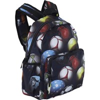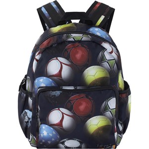 Geräumiger Rucksack mit Aufdruck bunter Fußbälle. Das Material des Rucksacks besteht aus recyceltem Polyester. Der Rucksack hat eine äußere Fronttasche mit Reißverschluss, Taschen auf beiden Seiten für beispielsweise eine Wasserflasche, einen gesteppten Rücken, einen Riemen zum Aufhängen und verstellbare Schultergurte. Der Rucksack misst ca. 18 cm breit und ca. 37cm. in der Höhe. Dieses Molo-Produkt ist recycelt und besteht aus recycelbarem Polyester, das aus gebrauchten Plastikflaschen und anderem Restmüll hergestellt wird. Die Herstellung von recyceltem Polyester benötigt viel weniger Ressourcen und stößt weniger CO2 aus, weshalb die recycelten Rucksäcke von Molo die nachhaltige Wahl sind.