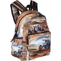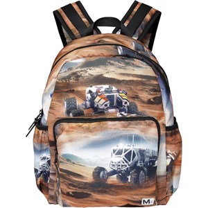 Geräumiger Rucksack mit Druck vom Mars. Das Material des Rucksacks besteht aus recyceltem Polyester. Der Rucksack hat eine Außentasche vorne mit Reißverschluss, beidseitige Taschen für beispielsweise eine Wasserflasche, einen gepolsterten Rücken, einen Aufhängeriemen und verstellbare Schultergurte. Dieses Molo-Produkt wird recycelt und aus recycelbarem Polyester hergestellt, das aus gebrauchten Plastikflaschen und anderen Restmüll hergestellt wird. Die Herstellung von recyceltem Polyester erfordert weitaus weniger Ressourcen und stößt weniger CO2 aus, weshalb die recycelten Rucksäcke von Molo die nachhaltige Wahl sind.