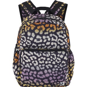 Geräumiger Rucksack mit verschiedenfarbigem Leopardenmuster. Das Material des Rucksacks besteht aus recyceltem Polyester. Der Rucksack hat eine äußere Fronttasche mit Reißverschluss, Taschen auf beiden Seiten für beispielsweise eine Wasserflasche, einen gesteppten Rücken, einen Riemen zum Aufhängen und verstellbare Schultergurte. Der Rucksack misst ca. 18 cm breit und ca. 37cm. in der Höhe. Dieses Molo-Produkt ist recycelt und besteht aus recycelbarem Polyester, das aus gebrauchten Plastikflaschen und anderem Restmüll hergestellt wird. Die Herstellung von recyceltem Polyester benötigt viel weniger Ressourcen und stößt weniger CO2 aus, weshalb die recycelten Rucksäcke von Molo die nachhaltige Wahl sind.