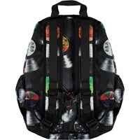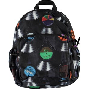 Geräumiger Rucksack mit Plattendruck. Der Rucksack hat eine Außentasche vorne mit Reißverschluss, Taschen an beiden Seiten, einen gepolsterten Rücken, einen Aufhängegurt und verstellbare Schultergurte.