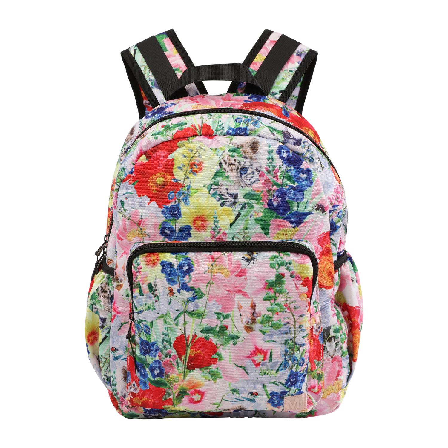 Geräumige Rucksack mit Blumendruck. Das Rucksack-Material ist aus recyceltem Polyester. Der Rucksack hat eine äußere Vordertasche mit Reißverschluß, Taschen auf beiden Seiten beispielsweise für eine Wasserflasche, gepolsterten Rücken, Lasche zum Einhängen und verstellbare Schultergurte. Dieses Molo-Produkt ist recycelt und besteht aus wiederverwertbaren Polyester, das aus gebrauchten Kunststoffflaschen und anderem Restabfall hergestellt ist. Die Herstellung von recyceltem Polyester erfordert weit weniger Ressourcen und leitet weniger CO2 aus, weshalb Molos recycelte Rucksäcke die nachhaltige Wahl sind.