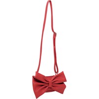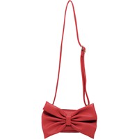 Diese rote Umhängetasche ist mit einem verstellbaren Schultergurt und einer großen Schleife auf der Vorderseite ausgestattet.