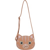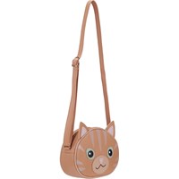 Hellorange Umhängetasche mit süßem Katzenmotiv auf der Vorderseite. Die Tasche hat einen verstellbaren Schultergurt.